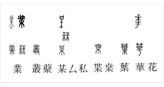 e:約略形聲「業」字的發音。漢字「業」發音與「頁」同,今華語發音 yiè、台閩語發音 yiá (接近 Eá),而 English 造字有時也用字母 e 或 a 和此發音的漢字符號互轉,如 pre- 與「預」字的互轉中 e 就是與符號「頁」互轉。整體來看,「業」字的本意應有「花葉草木大展成叢」的象徵,後來又引申爲事務的發展,即類似職業、事業等造詞的用字方式。但是,「業」字或也和古代鐘鼓樂器飾架上的大版子之指稱有關,例如《說文解字》對篆文「業」字的解釋記載:「業,大版也。所以飾縣鐘鼓。捷業如鋸齒,以白畫之。象其鉏鋙相承也。从丵从巾。巾象版。《詩》曰:『巨業維樅』。」,可見「業」字在古代也可能曾經作爲音樂方面的專業術語,被用來描述某種樂器裝置其中的組件。
