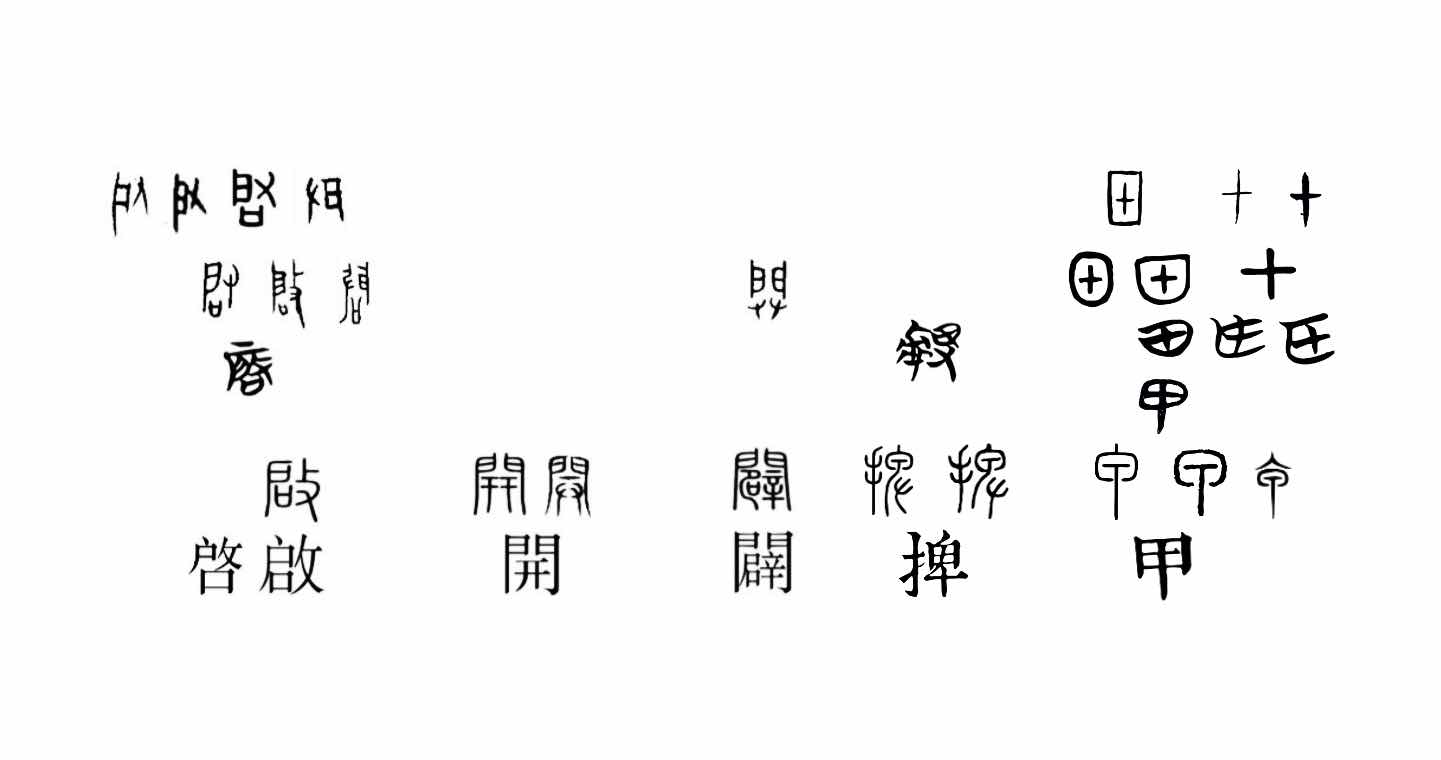 【附圖:「啓、啟、開、闢、捭、甲」字形演化】
