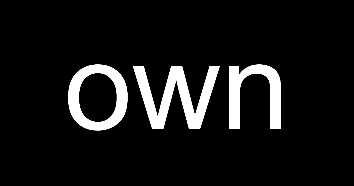 own = 王有人 = 王有𠆢 = 全有,類似「完全擁有」。其中 o 約略形聲台閩語「王」的 óng 式發音之起音。