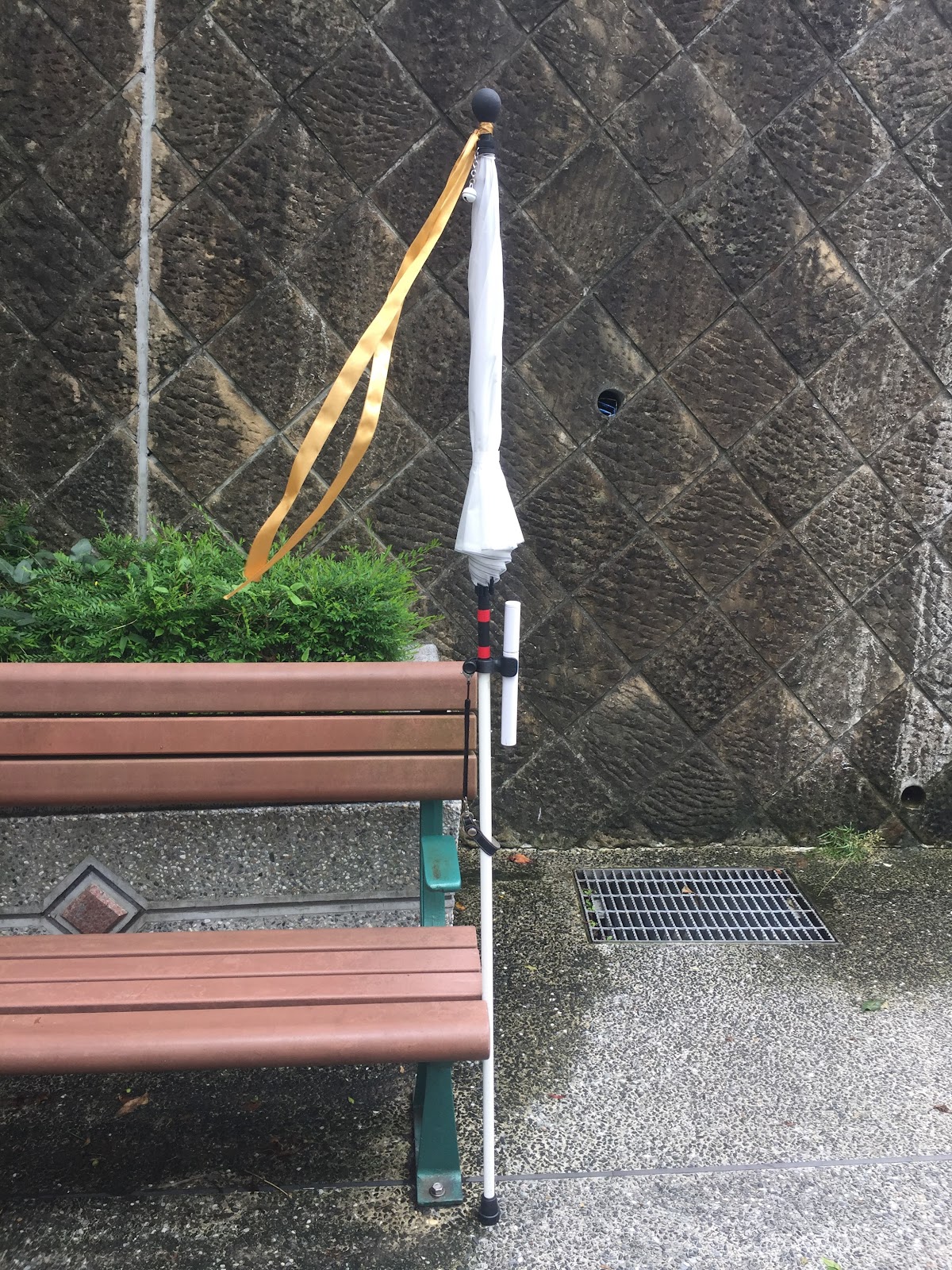 1、白色鋁製圓竿 + 回收雨傘 (鋸除彎鉤狀手把部份)